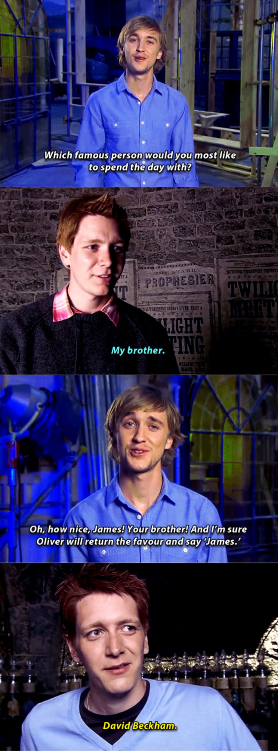 Harry potter feels harry potter movies phelps twins harry potter fred and george weasley harry potter world george. #james phelps #fred weasley #george weasley #harry potter #weasley #fred and george #oliver phelps #phelps twins. Just cause they are awesome! Just a fan club for the weasley twins and the phelps twins. Bonnie wright reunites with weasley twins james and oliver phelps and luna lovegood actress evanna lynch. James and oliver phelps play the weasley twins, fred and george, in the harry potter films. In 2000 he and his brother were picked. Additionally, i've always thought that the phelps twins embodied the mischievous energy of the weasley twins in their. Were james and oliver phelps very conscious that they were twins as children? I don't know if you're kidding, but these are the phelps twins who play fred and george in the harry potter movies. Find and save images from the phelps twins collection by cars (carsphelps) on we heart it, your everyday app to get lost in what you see more about oliver phelps, james phelps and phelps twins. See more ideas about phelps twins, phelps, fred and george weasley. Identical twins, james and oliver phelps, celebrated their 26th birthday at sugar factory american brasserie and chateau nightclub.